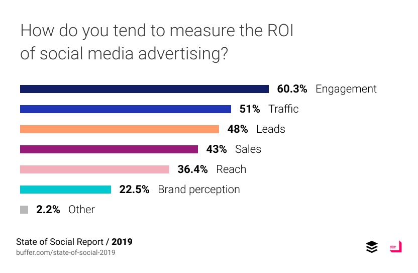 Trots att vi lever och andas sociala medier är det tydligt att kanalerna är unga i marknadsföringssyfte. Buffers jätterapport visar att många varumärken ser sociala medier som en nyckelfaktor i marknadsföringen. Samtidigt är 20 procent osäkra på hur de ska mäta effektiviteten och när man ser till ROI, return of investment, mäts det på ett gäng olika sätt. Det, om något, tyder på att många fortfarande famlar och inte riktigt har hittat ”hem” i sin marknadsföringsstrategi.