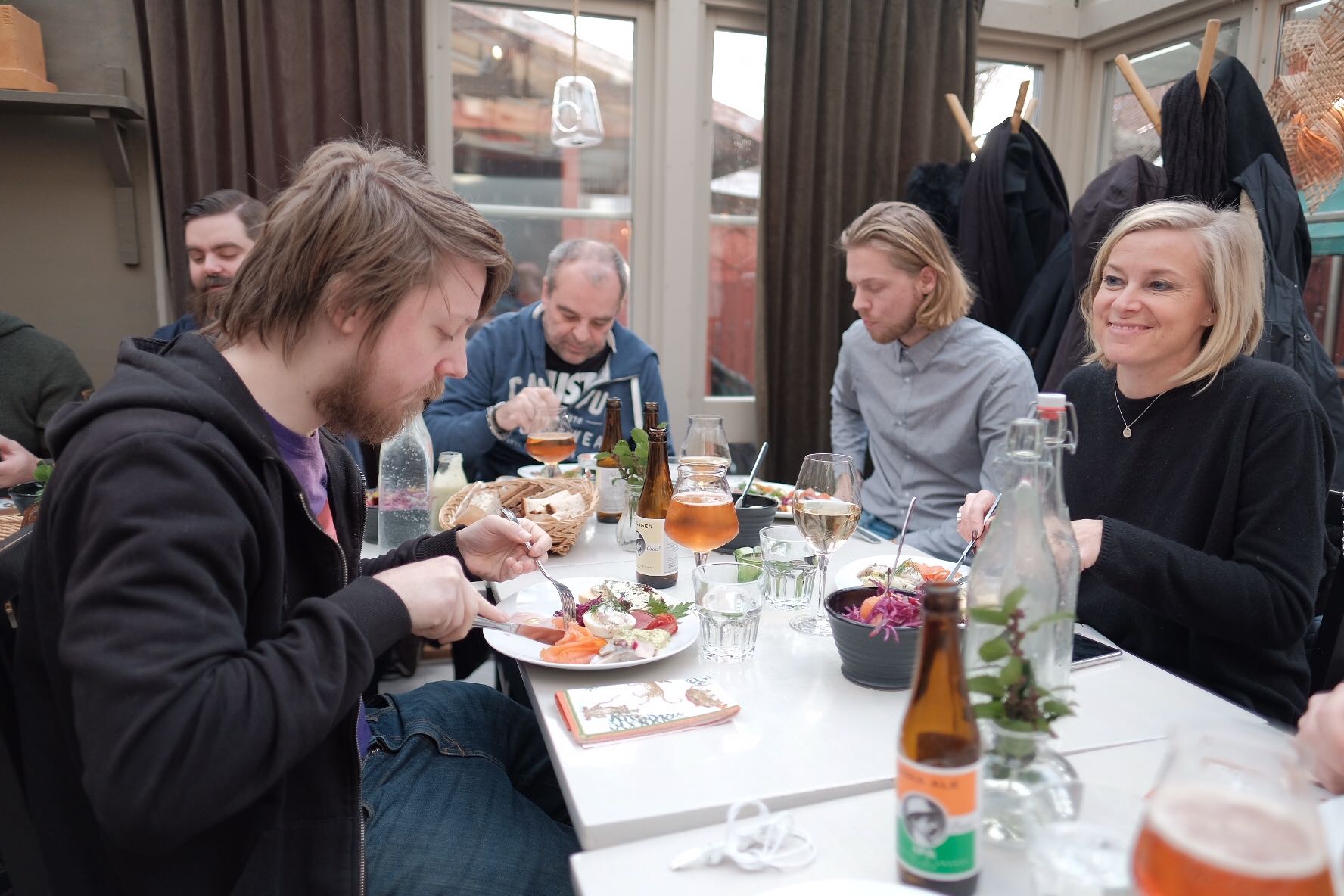 Vi fortsatte på inslagen linje med öl och mat i strid ström.