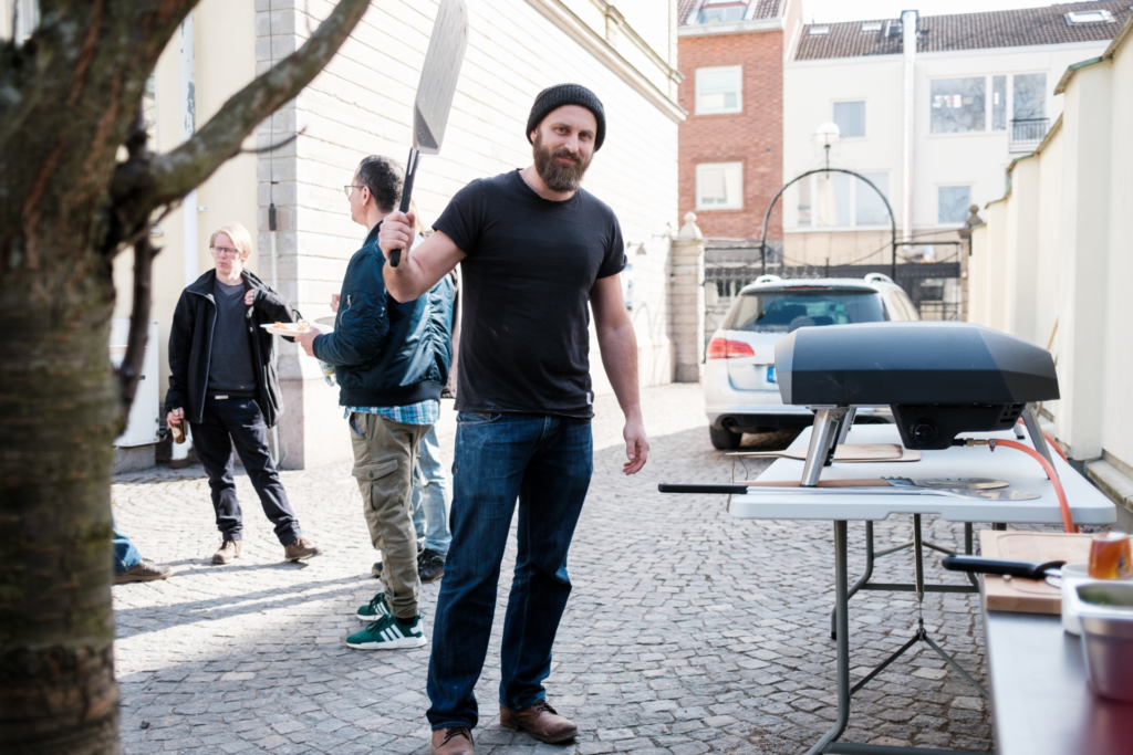 Det firade vi med pizzalunch på vår utegård. Luca har ”gnällt” på att svenskar inte kan göra pizza. Nu blev det upp till bevis och med hjälp av Alex och Christian bakades de otroligt goda napolitanska pizzor som slog det mesta vi provat tidigare.