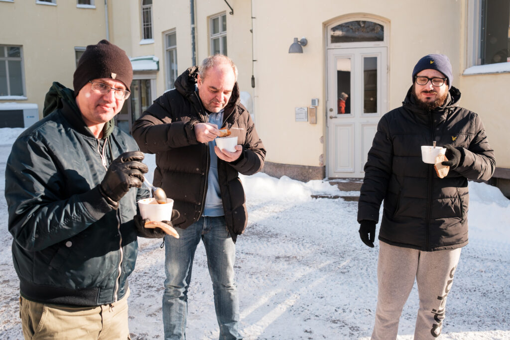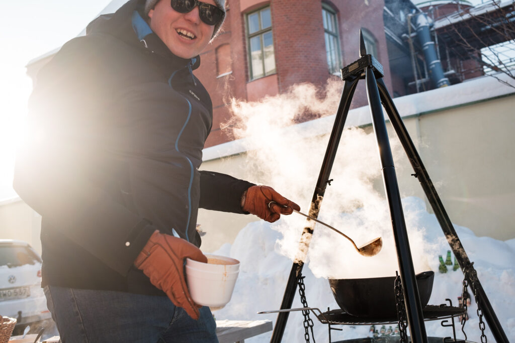 Snöhögar att kyla dryck i och isglitter så långt ögat når. Gulaschsoppa, brasa och gemenskap.